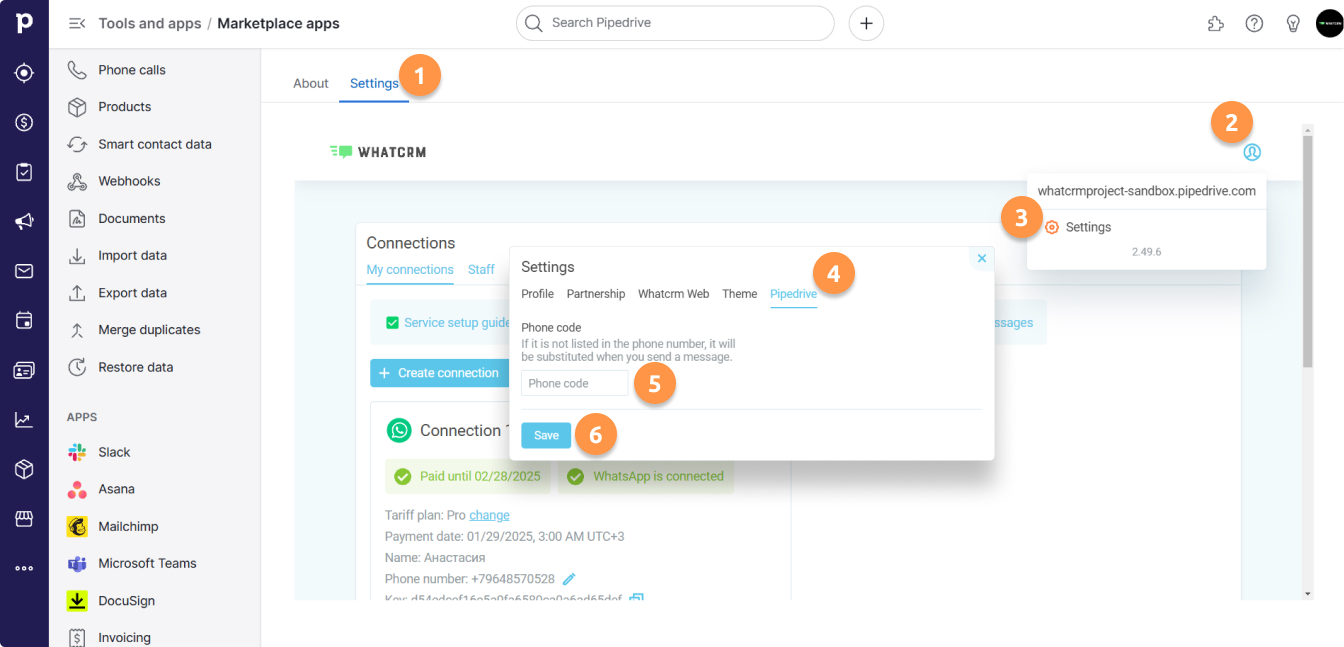 1. Go to Whatcrm Integration Settings
