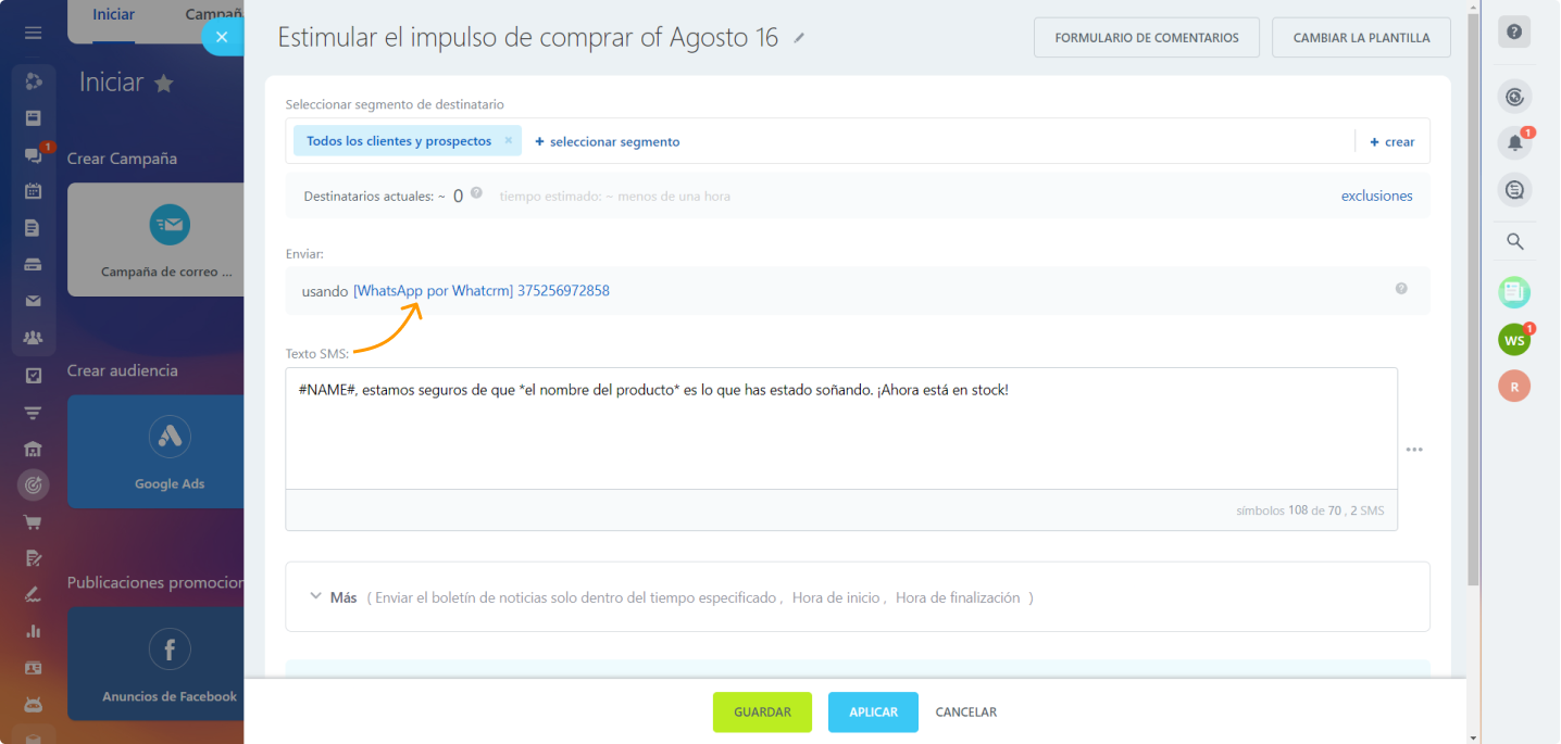 7. Haz clic en **"Guardar"** o **"Enviar"** para completar la configuración y lanzar la campaña.