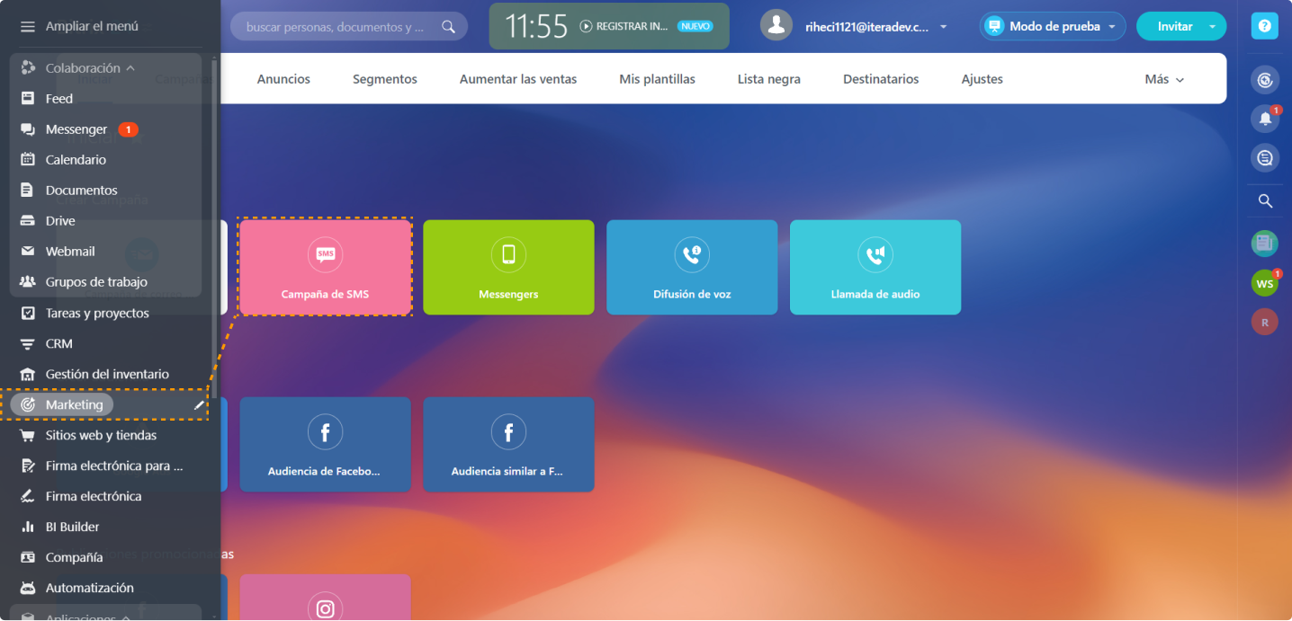 Asegúrate de que tienes acceso al módulo de marketing por SMS en Bitrix24. Si no tienes acceso, contacta con el administrador de tu sistema para activarlo.