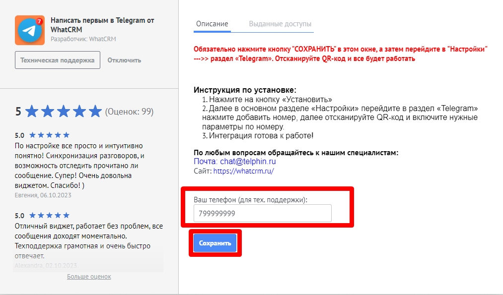 - В окне установленного приложения введите ваш номер телефона и нажмите - 'Сохранить'
