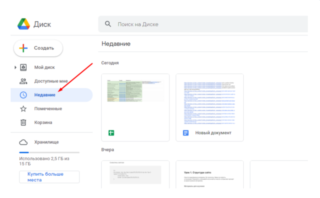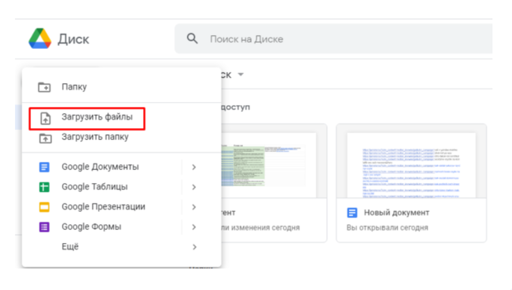 Выберите нужный файл на своем компьютере, после чего он загрузится в библиотеку Google Диска. Файл можно будет найти во вкладке "Недавние".